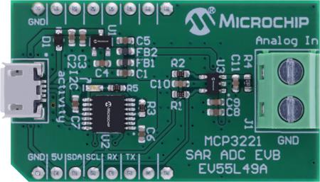 Microchip EV55L49A, MCP3221 SAR ADC Evaluation Board Evaluation Board Evaluation Board for MCP3221 for MCP3221