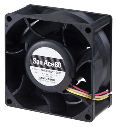 Sanyo Denki San Ace 9HVA Series Axial Fan, 12 V dc, DC Operation, 225m³/h, 42W, 3.5A Max, 80 x 80 x 38mm