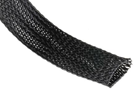HellermannTyton Expandable Braided PET Black Cable Sleeve, 25mm Diameter, 10m Length, Helagaine HLB Series