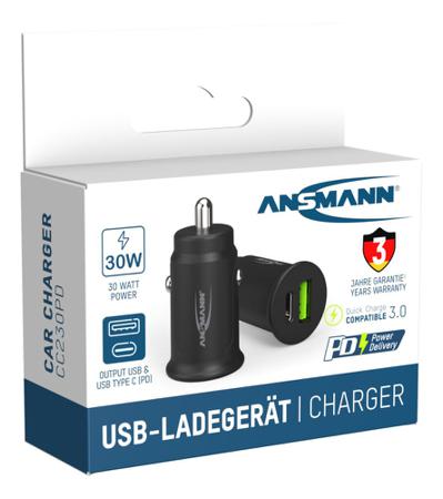 Ansmann Car Charger, 12 → 24V dc Input, 5V dc Output USB, 3A
