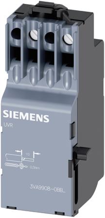 Siemens 3VA Auxiliary Contact and Undervoltage Release The auxiliary and alarm switches for 3VA molded case circuit breakers can be installed in all sizes of all breakers up to 630 A. All auxiliary and alarm switches are designed as changeover contacts and therefore provide a high degree of flexibility for planning and installation purposes Auxiliary switches signal the position of the main contacts of the molded case circuit breaker (RS 874-4534 and 874-4537 ) Trip alarm switches signal every circuit breaker trip, regardless of the cause of the trip (RS 874-4512 and 874-4515 ) Electrical alarm switches are operated as soon as the main contacts of the molded case circuit breaker open in the event that the breaker is tripped by the ETU (RS 874-4519 ) Short circuit alarm switches signal trips only if they have been initiated by a short circuit (RS 874-4528 ) Undervoltage releases trip the molded case circuit breaker in the event that the rated voltage fails or drops to between 70 % and 35 % of its normal value (in compliance with the relevant standard) The units are available with rated voltages in the following range: 230 VAC (RS 874-4525 ) 24 VDC (RS 874-4521 ) Shunt trips of type STL can be fitted in the left-hand accessories compartment as an alternative to an undervoltage release. The units are available with five rated voltages in the following range: 230 VAC (RS 874-4540 ) 24 VAC/VDC (RS 874-4531 ) Siemens 3VA MCCBs and accessories
