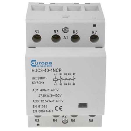 Europa Contactor, 230 V ac Coil, 4-Pole, 40 A, 12.5 kW, 4NC, 400 V ac