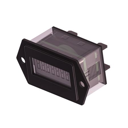 Trumeter 3410 Series Hour Meters The 3410 Series provides a large display, with 7mm high characters, in industry standard housings. All models are totally sealed and capable of submersion in 2 metres of water. The hour meters accept a wide operating voltage of 10-300VDC and 20-300VAC. All models are IP66 (NEMA 4/4X, 12) rated when used with the included gasket and have a polarized lens which assures high visibility in an outdoor environment. 8 digit LCD display 7mm high characters Totally sealed from moisture and dirt AC or DC voltage input in the same unit Compact depth Fits in existing panel openings Always on display Choice of 5 housings Choice of reset modes Self-powered 15+ year battery life Note 849-4646 is 2-hole panel mount, non-reset 849-4655 is a 2-hole panel mount, with remote reset 849-4658 is a rectangular flush mount, with remote reset 849-4652 is a round SAE flush mount, with remote reset 882-6948 is a 3-hole panel mount, non-reset 882-6942 is a rectangular flush mount, non-reset 882-6951 is a round SAE flush mount, non-reset