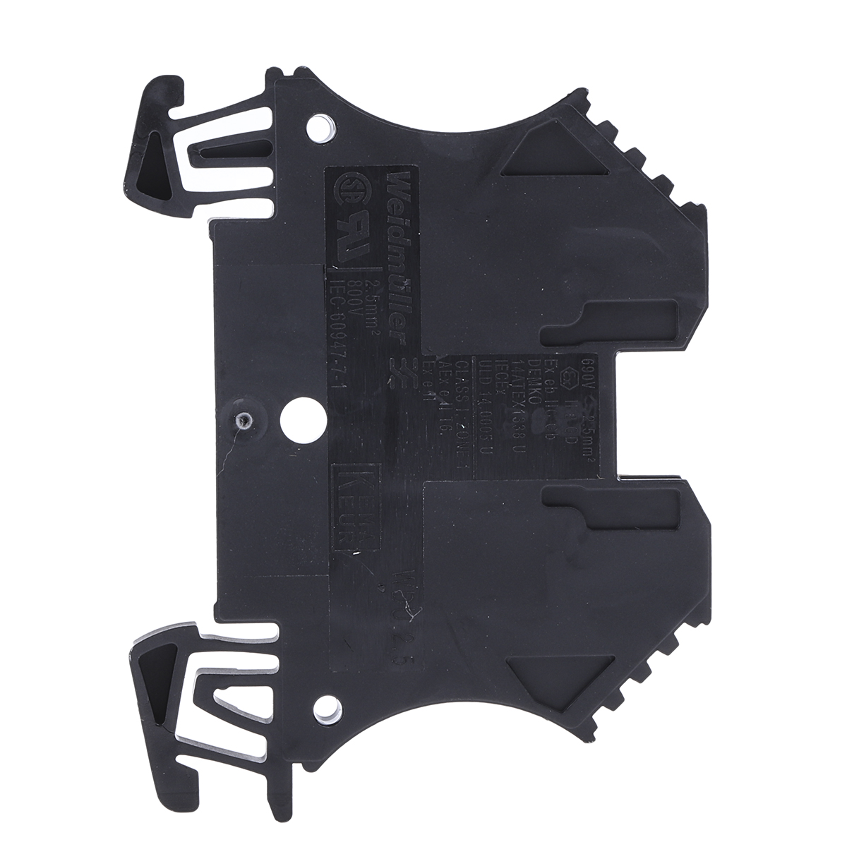 Weidmuller Feed-Through Terminal Block, 800V Voltage Rating, 30 to 12AWG Wire Size - WDU Series - 1020010000 Need a reliable way to connect two wires? This single-level feed-through terminal block from Weidmuller will do the job. It's designed with screw terminals made from steel and tinned copper for dependable conductivity and a secure connection. As this unit accepts solid, stranded and ferrule-ended wires in sizes between 30 and 12AWG, you can tick versatility off your wish list. The block's Wemid housing is resistant to impact and wear, making it a long-lasting choice in tough environments. Features & Benefits • Wide operating temperature range between -50°C and +120°C for use in harsh conditions• Rear clips mean you'll have it attached to your DIN rail in no time• Self-extinguishing for safety in the event of a fire• Compact dimensions of 60 (H) x 5.1 (W) x 46.5mm (D) to maximise packing space on your rail Applications • Power distribution• Safety systems• Process control• Machine automation Can I use this feed-through terminal block in high-power circuits? Thanks to its voltage rating of 800V, this terminal block has no trouble handling high-power applications.