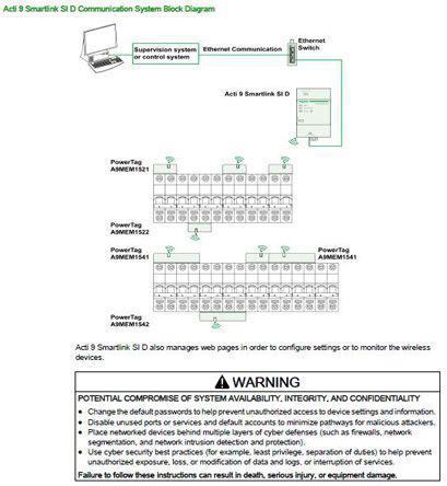 Acti9 PowerTag Energy Sensor The Acti 9 Smartlink system is used to monitor the final distribution boards to any supervision system. Modular Acti 9 devices in the Acti 9 Smartlink system are used to monitor, and measure the electrical distribution boards via a Modbus TCP/IP communication network. The Acti 9 Smartlink system collects the data from electrical distribution boards in real time, thus contributing to achieve efficiency targets or monitoring final loads. The system consists of: Acti 9 Smart Link SI D. PowerTag energy sensors (A9MEM1520, A9MEM1521, A9MEM1522, A9MEM1540, A9MEM1541 and A9MEM1542) are the wireless devices that are directly mounted on a circuit breaker and are connected to Acti 9 Smartlink SI D through wireless communication. The circuit breaker auxiliary allows you to monitor the devices and collects not only energy, but also power and alarm events on the voltage loss. PowerTag energy sensors are mounted upstream or downstream of Acti 9 circuit breaker or Multi 9 circuit breaker. Pre-wired cables. The system offers the following advantages and services: Calculation functions Telemetering applications Monitor load unbalance Monitor power and voltage loss Energy management and regulations Acti 9 Smartlink SI D is a wireless connection to Modbus TCP/IP concentrator.
