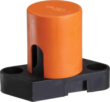 The Schneider Electric Safety terminals section, for Multi-purpose device application. Mounting location is on mounting accessories. Material used is Polyamide 6 matt black for base, Polypropylene orange for cover & Zinc-plated and dichromated steel for ring. Sustainable green premium product The product is mercury free
