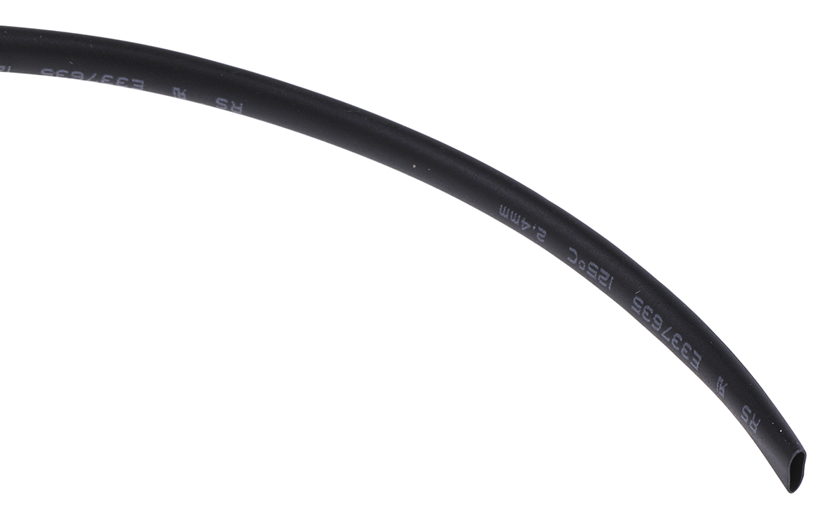 RS PRO Heat Shrink Tubing, Black 2.4mm Sleeve Dia. x 10m Length 2:1 Ratio