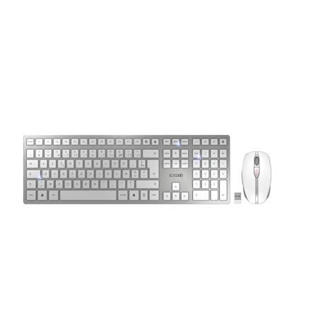 Cherry CHERRY DW 9100 SLIM Wireless Ergonomic Keyboard and Mouse Set, AZERTY (France), Silver/White