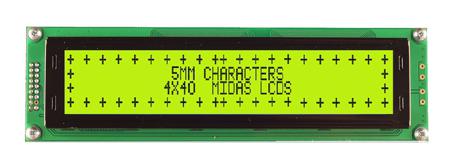 Midas MC44005A6W-SPTLY-V2 MC44 Alphanumeric LCD Display, Black on Yellow/Green, 4 Rows by 40 Characters, Transflective