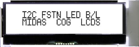 Midas MCCOG21605C6W-FPTLWI Alphanumeric LCD Display, White on Black, 2 Rows by 16 Characters, Transflective