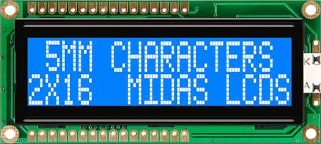 Midas MC21605G6WK-BNMLW-V2 Alphanumeric LCD Alphanumeric Display, 2 Rows by 16 Characters