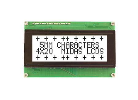 Midas MC42005A6W-FPTLWS-V2 Alphanumeric LCD Alphanumeric Display, 4 Rows by 20 Characters