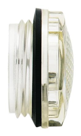 Fluid Level Sight Glass - Prismatic Oil Level Indicator with a window consisting of a continuous series of prisms providing a clear and immediate reading of oil level in the tank. Manufactured from a polyamide technopolymer with an NBR synthetic rubber packing seal. The indicator is resistant to oils with additives, greases acids and alkalis and capable of continuous working up to a temperature of 100°C.