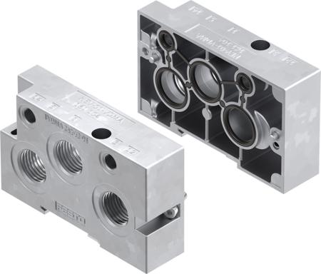 Festo NEV series 3 station G 1/2, G 1/8 Manifold End Base for use with Solenoid/Pneumatic Valves, 161104