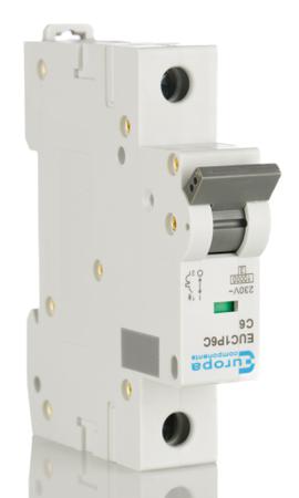 Europa EUC1P EUC MCB, 1P, 6A Curve C, 230V AC, 10 kA Breaking Capacity