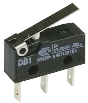 ZF Short Lever Micro Switch, Tab Terminal, 6 A @ 250 V ac, SPDT