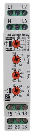 RS PRO Voltage Monitoring Relay, 3 Phase, DPDT, DIN Rail