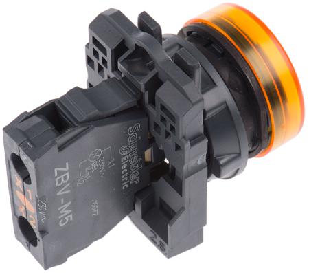 Schneider Electric , Harmony XB5, Panel Mount Orange Universal LED Pilot Light, 22mm Cutout, IP66, IP67, 240V ac