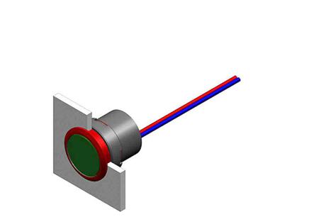 The EAO indicator actuator has a mounting cut out of 22.3mm. The actuator has a circular front with dimension of 25mm with a black plastic ring. The front has IP67 rated protection. Function: Indicator