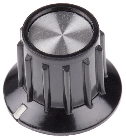 TE Connectivity 20.2mm Black Potentiometer Knob for 6.35mm Shaft Splined, PKA50B1/4