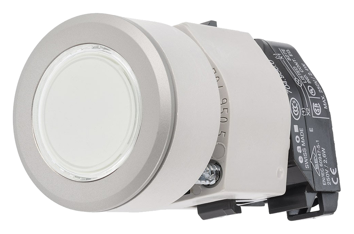 Pushbutton Body Illuminated Flush Mount - series 04 Flush mount illuminated pushbutton bodiesNatural finish aluminium bezel30.5 mm panel cut-out35 mm bezel diameterIP65 above panel ratingContact block must be ordered separately
