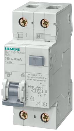 The Siemens 5SU series is a SENTRON range Instantaneous 2 pole, Tripping class C RCBO circuit breaker, which operates on 230 V AC and has mechanical service life (switching cycles) up to 10,000. RCBOs with a rated tripping fault current of maximum 30 mA are used for personnel, material and fire protection, as well as for protection against direct contact. Degree of protection class IP20 Halogen free Silicon free