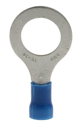 TE Connectivity PLASTI-GRIP Ring Tongue Wire Crimp Terminals PLASTI-GRIP closed barrel ring tongue wire crimp terminals made of high conductivity tin plated copper with an expanded high dielectric strength 94V-0 rated vinyl insulation sleeve. The inner barrel of these PLASTI-GRIP closed barrel ring tongue crimp terminals is serrated in order to provide maximum electrical contact and tensile strength after crimping. The funneled entry on the wire barrel enables the stripped wire to be inserted more easily. Red 0.25 - 1.6 mm²