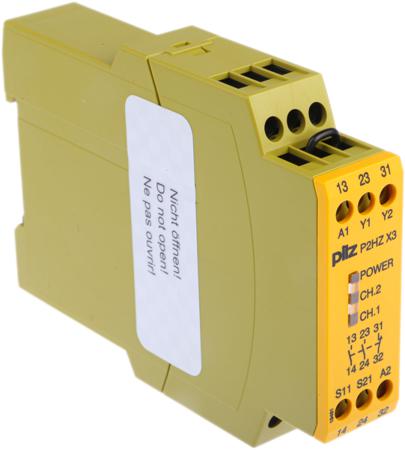 PILZ P2HZ X3 Safety Relay The PILZ P2HZ X3 range is an affordable, durable and reliable safety relay designed with two handed control units in mind. Useful when you need to control your press controllers and safety circuits. Features and benefits Specially designed for two handed control/operation. The P2HZ series will not function unless the operator has their hands outside the danger zone area during hazardous movement. LED indicator for switching your channel status from 1 to 2 and also to monitor your supply voltage Single or Dual channel input operation (Single channel are used more beneficially with smaller type machines where you need to use a dedicated logic device that only has a small function to cut off in an emergency – Dual allows you to take control of more safety circuits and control a greater amount of control zones at any given time) Suitable for DIN rail mounting Durable and has an extended service life vs. competitors Positive guided relay outputs (2 safety contacts, 1 auxiliary) Safety features The relay will provide the circuit self-monitoring. The safety functions of the device remain in effect even in the case of component failures. The relay will prevent the circuit from further press strokes in the case of, relay failures, contact welding, coil defects or open/short circuits. Applications Mechanical presses Hydraulic presses General safety circuits (in accordance with EN 60204-1) Technical safety parameters EN 60204-1 EN 954-1 EN (IEC) 62061 EN ISO 13849-1 IEC 61511 – SIL 3 Tolerance 85-110% supply Power consumption 2.5W Voltage/current at the input circuits 1//2 24Vdc/20mA Switching capability in accordance with EN60947-4-1 and EN60947-5-1 ac 15: 230V/2.5a dc 13: 24V/1.5A Delay on de-energising approx 15ms Simultaniety 1//2 Contact fuse protection 6A quick...