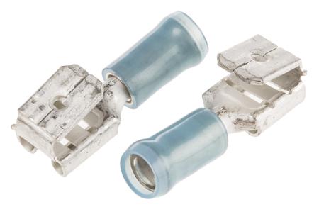 TE Connectivity PIDG FASTON .250 Blue Insulated Female Spade Connector, Piggyback Terminal, 6.35 x 0.81mm Tab Size,