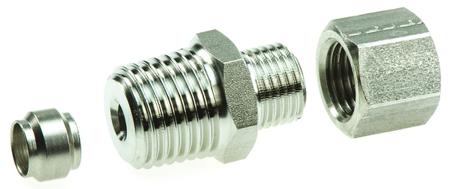 Legris Stainless Steel Pipe Fitting, Straight Hexagon Coupler, Male BSP 1/4in