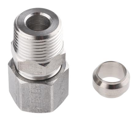 Legris Stainless Steel Pipe Fitting, Straight Hexagon Coupler, Male BSP 3/8in