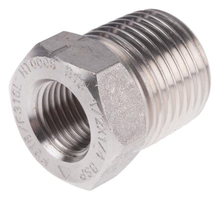 RS PRO Stainless Steel Pipe Fitting, Straight Hexagon Bush, Male R 1/2in x Female Rc 1/4in