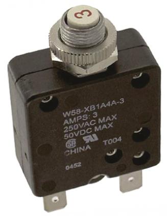 TE Connectivity Thermal Circuit Breaker - W58 Single Pole 50 V dc, 250V ac Voltage Rating, 3A Current Rating
