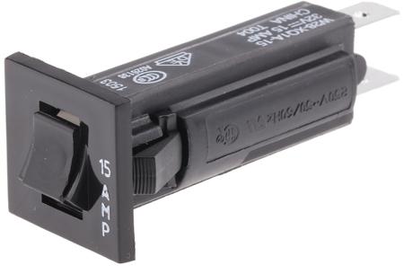 TE Connectivity Thermal Circuit Breaker - W28 SP Pole 32 V dc, 250 V ac Voltage Rating Panel Mount, 15A Current Rating
