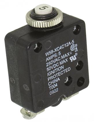 TE Connectivity Thermal Circuit Breaker - W58 Single Pole 50 V dc, 250V ac Voltage Rating, 5A Current Rating