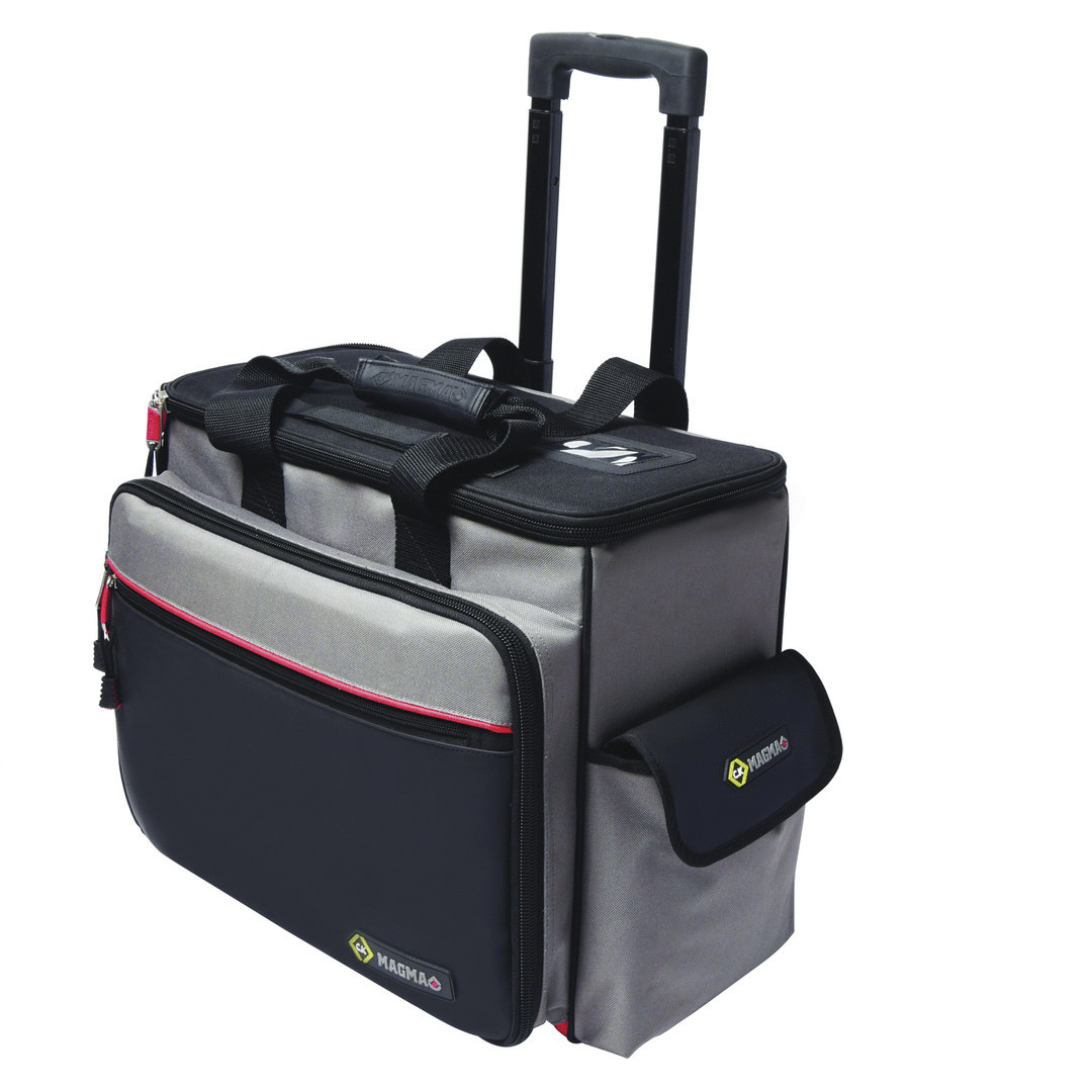 Designed to cope with all terrains and larger toolkits, the new Technicians Wheeled Toolcase provides the perfect solution to effortlessly getting your tools to the job. C.K Magma products combine optimal functionality with creative style to deliver a full range of products that are truly smarter by design. Rugged and durable chassis, wheels and telescopic handle for all terrain useBalanced design for effortless movement of larger toolkits, test equipment and power toolsExtra wide main compartment featuring a red lining for high tool visibility30x Deep square pockets and tool holders for efficient tool storageTough 600D Polyester constructionZip down front panel featuring tool and A4 document storageHeavy duty, pierce protected zips for long life performance.