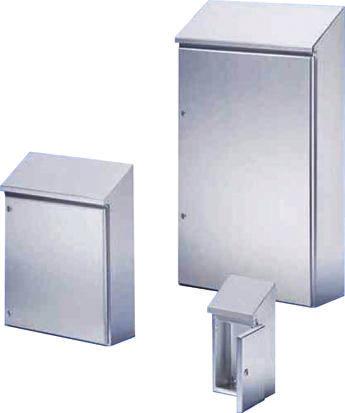 RITTAL IP69K HD Wall Boxes Rittal Hygienic Design (HD) enclosures are ideal for use in the food industry and clean room environments with an emphasis on ease of cleaning 30° Sloped roof Roof projection with overhang edge All-round chamfered door edge folds Durable Blue silicone seal Internal hinge design Stainless steel lock insert and cam Supplied with sheet steel mounting plate